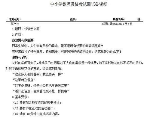 例如,在一位老师的试讲视频中,她用生动的比喻和形象的语言,将抽象的思想品德概念具体化,让孩子们在轻松愉快的氛围中理解并接受这些知识。她还通过小组讨论、角色扮演等形式,激发孩子们的参与热情,让整个课堂充满了欢声笑语。